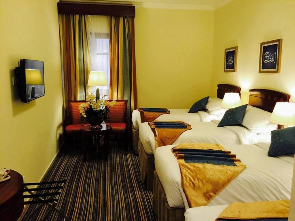 The perfect 3-star Al Eiman Al Qibla Hotel is situated in the very heart of Medina a mere 8 minutes on foot from such shopping venues as Medina Dates Market. This Medina hotel offers place to stay with Wi-Fi in public areas. Staying at one of the 170 rooms, guests are welcome to use a flat-screen TV with satellite channels as well as a minibar fridge. The property is located in the Central Madinah district of Medina, a 25-minute stroll from Al Jum'a Mosque and about 10 minutes' drive from Al Aswaf Garden. The Al Eiman Al Qibla Medina is also a 10-minute ride from such natural sights as King Fahd Central Park. The nearby notable religious buildings include Al Masjid a Nabawi Mosque, just a short stroll from the perfect accommodation. Al Eiman Al Qibla Hotel is only 5 minutes' walk from Saptco Vip Express bus station.